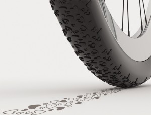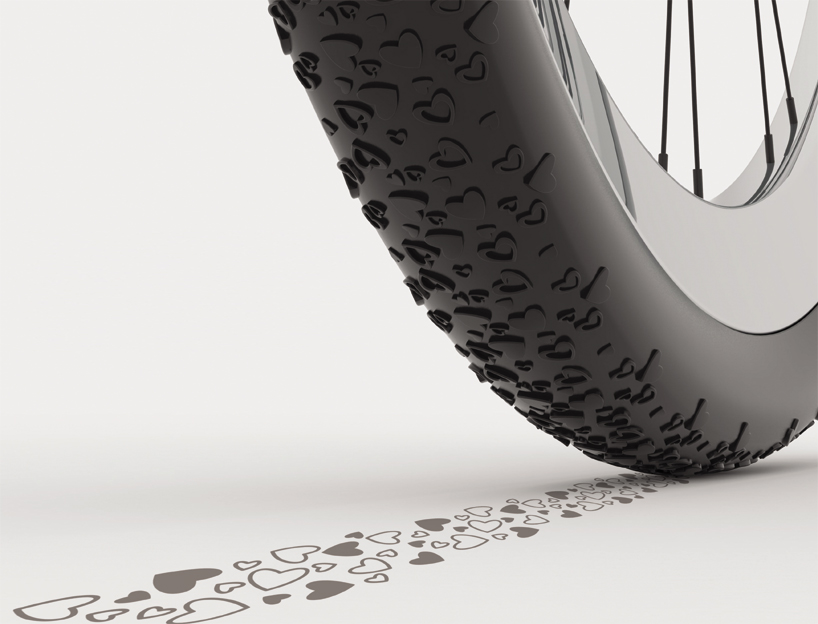 Se trata de unas adorables ruedas todo terreno para ponerle a tu bicicleta o motocicleta, cuya particularidad se basa en los cientos de corazones (de diferentes tamaños y formas) que adornan la totalidad de sus cubiertas.
