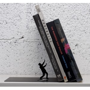 Se trata de un sujetador de libros que consta de un hombrecito miniatura que sujeta la catarata de libros que se le viene encima para no ser aplastado por la gran masa literaria. Un regalo super original, ideal para causar sensación entre las visitas curiosas.