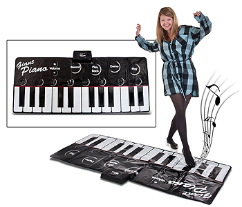 Se trata de una piano gigante similar al de la película, con la única diferencia de que se trata de una alfombra con censores. Parecido a la alfombra que se utiliza para realizar competencias de baile, pero nada mas que con forma y sonido de piano.