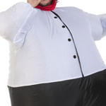 Se trata de un divertido disfraz inflable de Cheff que te agregará mas de 100 kilos con tan solo inflarlo a través de su válvula de aire.