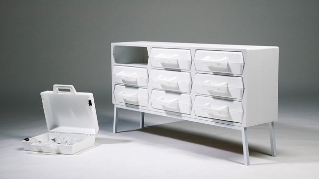 Se trata de un mueble muy especial que en vez de presentar cajones para guardar la ropa, lo hace directamente en maletas.