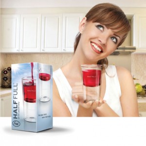 El regalo ideal para todos aquellos amantes del positivo dicho popular, `Hay que mirar la parte del vaso medio lleno´, o por que no, para todos aquellos que están intentando frenar un poco el vicio de la bebida (Aunque por supuesto, el vaso se puede llenar una y otra vez por la mitad, ¡una cosa no impide la otra!).