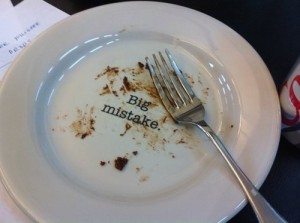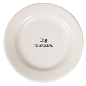 Se trata de un plato muy particular que pertenece a una cadena de platos personalizados que puedes conseguir en el sitio web Fisheddy.com, y es reconocido como “el plato del remordimiento”. ¿Por qué? Porque escrita en su lomo yace la frase más temida por cualquier persona que está haciendo dieta: “¡Big mistake!”, que traducido al español significa “¡gran error!”.