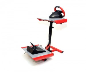 Se trata de un soporte para poner volante y pedales, y poder jugar cómodamente a todos tus juegos de carreras. Como imaginaras se necesita una habitación amplia, tanto para jugar como para después guardarlo……
