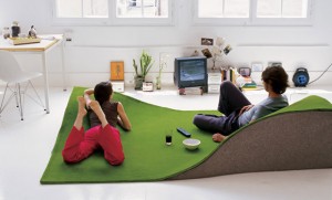 Su nombre es Flying Carpet Rug y se trata de un diseño muy original creado por los artistas Ana Mir & Emili Padrós para Nani Marquina. Se trata de un producto de diseñador, asà que su precio no debe ser para nada accesible. Pero bueno, la originalidad a veces sale cara ¡Y mira lo bien que se la están pasando estos dos mirando la tele sobre un irregular campo de césped artificial. Creo que vale la pena el gasto.