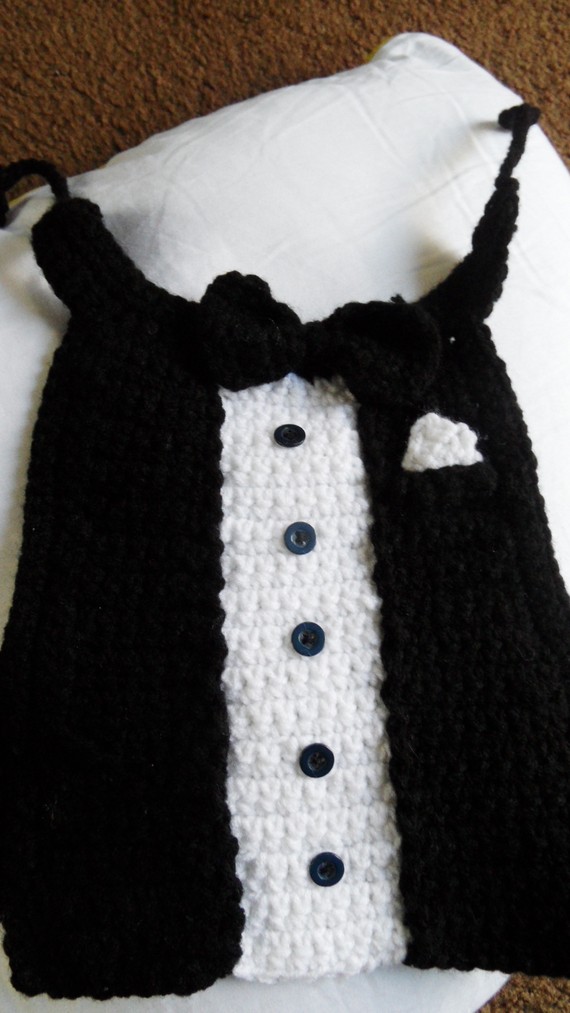 Se trata de una ingeniosa capa bien abrigadita, tejida 100% a crochet, cuyo modelo imita al fino esmoquin que vestirÃa cualquier persona durante un evento social importante. Después de todo, si te han invitado a algún evento en compañÃa de tu perro , ¡él también merece estar presentable!